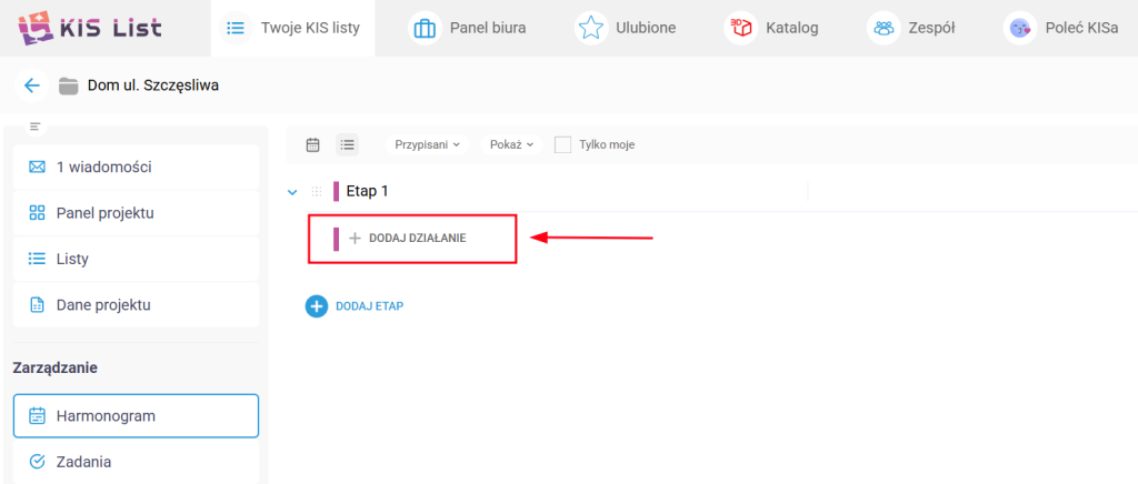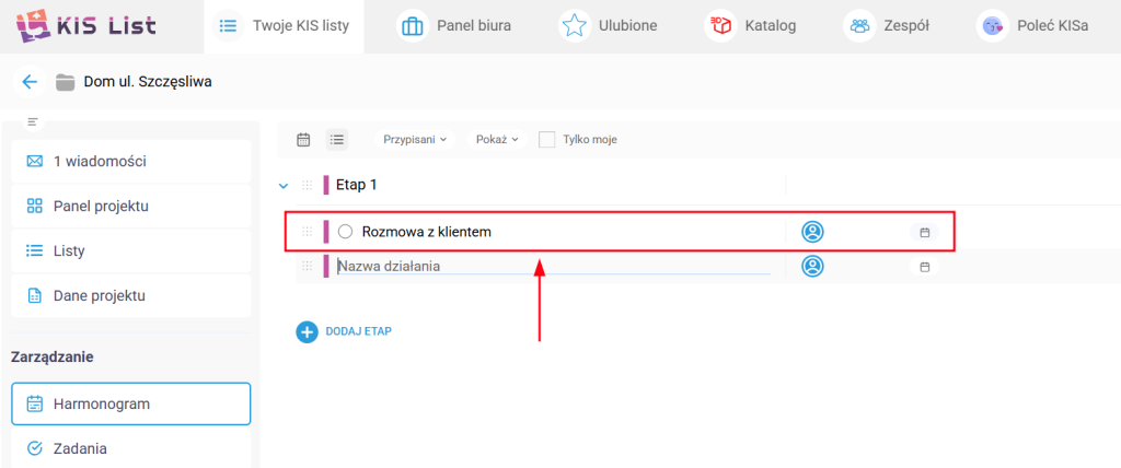 W KIS List możesz stworzyć harmonogram projektu, dzięki czemu: